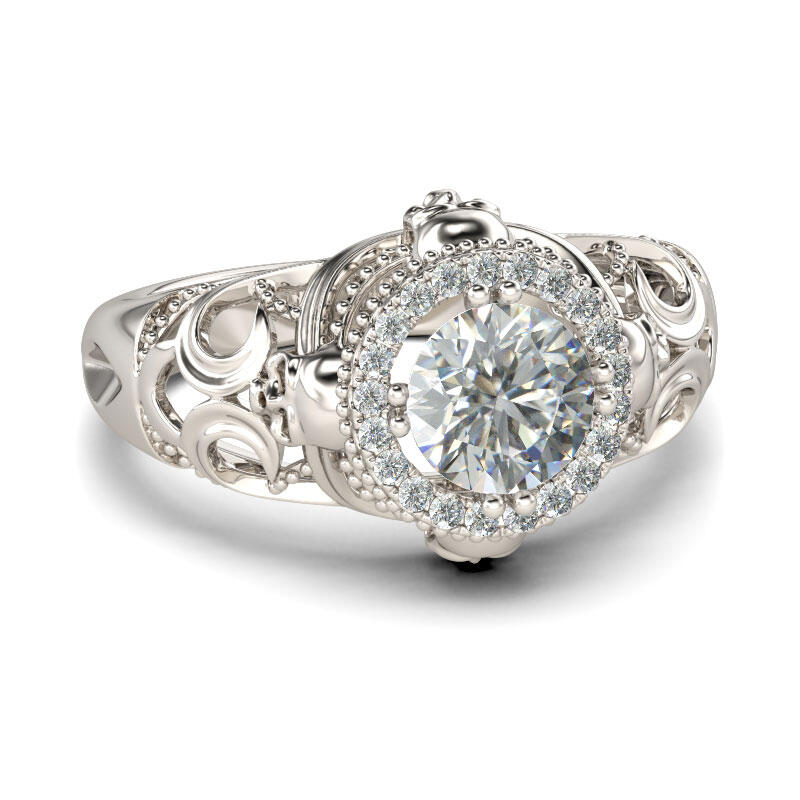 When you face your inner fear, this skull ring is your best witness.Round Cut White Sapphire Rings with four skull decoration in the side stone, hollow pattern design, increasing a few calm moments for your life. Skull Rings is more and more popular for the Millennials, who want to show the attitude and confidence, Begin your cool style skull ring at Jeulia with engraving service!