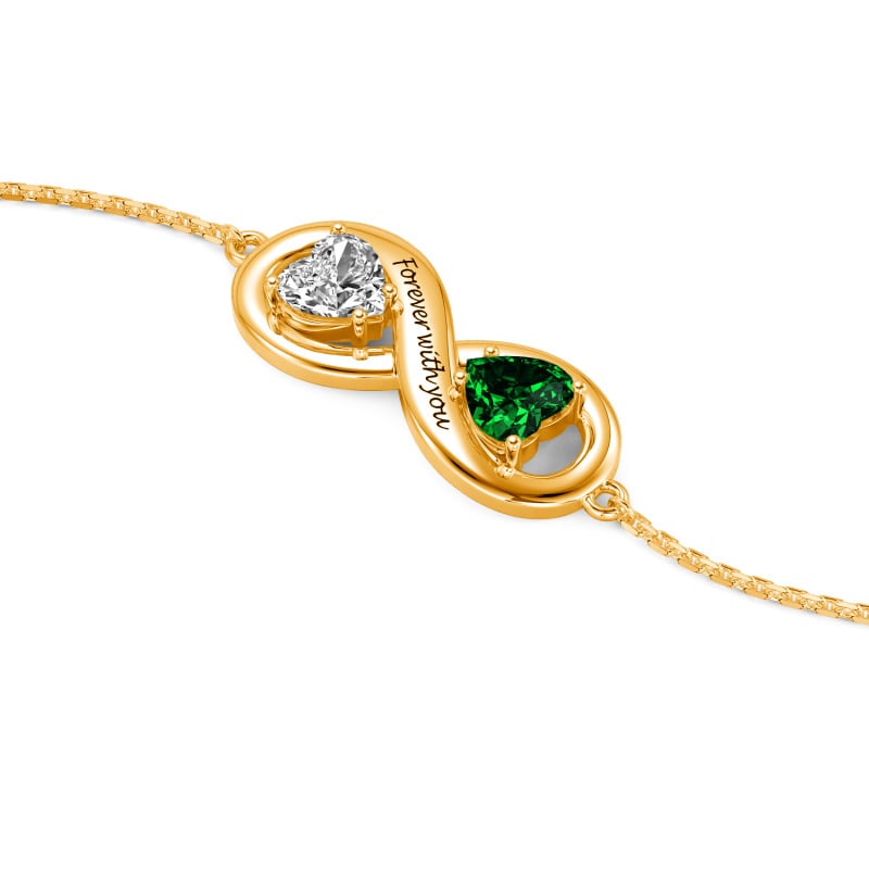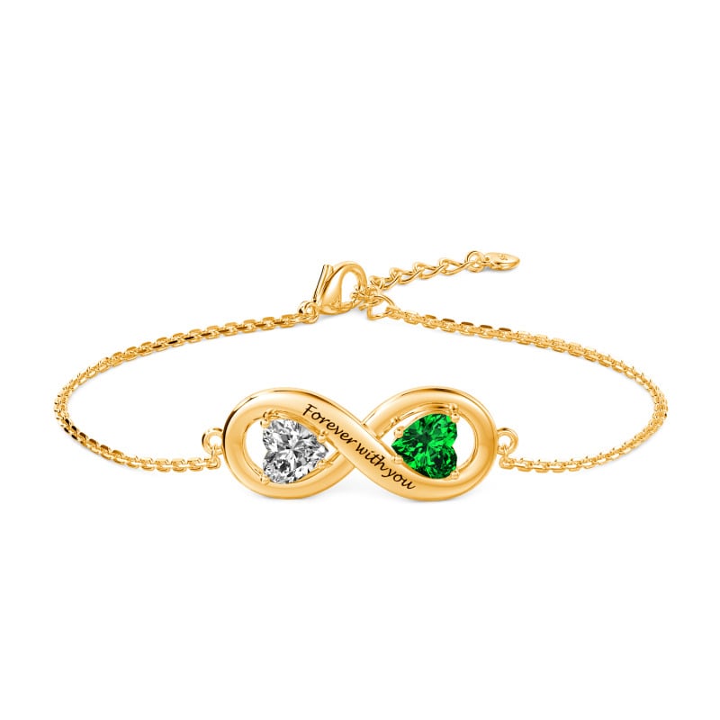 With the infinity symbol at the heart of the design, this custom infinity heart bracelet showcases the theme of eternity and love. The two heart-shaped stone are amethyst and ruby, symbolizing the depth and passion of emotions, intertwined with each other to form a unique double heart design. The sparkle of the gemstones is enhanced by the silver chain, resembling the sparkling moments of love. The middle part of the infinity heart bracelet can be customized with engraving, allowing the wearer to remember the deep commitment and memories with their loved one, deepening the emotional value of this jewelry. The product provides customization services, customers can not only choose different metal colors, but also according to personal preferences custom gemstone hue, giving each bracelet a unique personality and connotation.