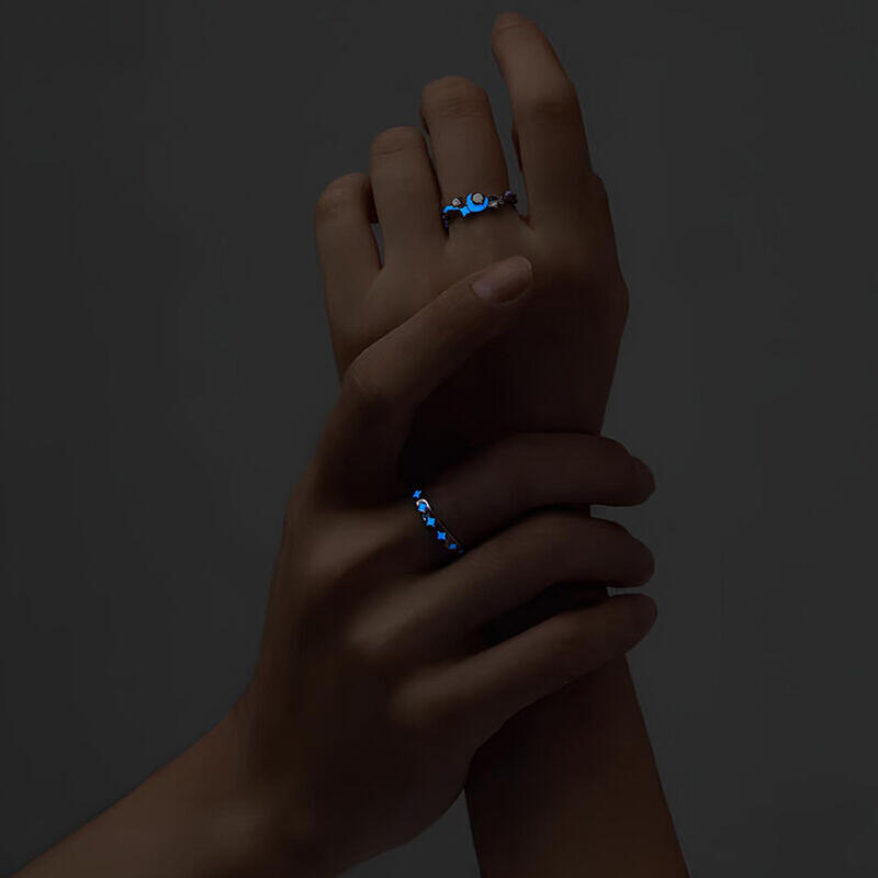 This unique moon and star luminous women promise ring is like the brightest star in the night sky, adding a touch of mysterious and romantic light to your love. The delicate surface of the ring is inlaid with a delicate star and moon pattern, which will emit a soft blue glow in the dark, resembling the stars and bright moonlight in the night sky. This is not only a simple promise ring, but also an eternal promise, symbolizing that your love is as constant as the stars and moon.