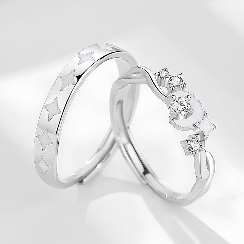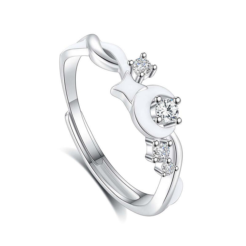 Jeulia Romantic Moon Star Women Promise Ring Sterling Silver